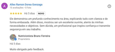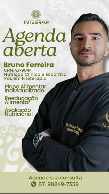 Sou nutricionista fitoterápico, clínico e esportivo, conhecedor no comportamento alimentar, saúde feminina, perda de peso e ganho de massa muscular, tenho amor e paixão pela nutrição. Promovo a autoestima das pessoas por uma alimentação equilibrada e a reconciliação com a comida. Criei um método eficiente para que sua busca por uma vida saudável e feliz seja suave e prazerosa. Realizo um trabalho de nutrição gentil e sem restrições, respeitando os gostos, cultura, costumes, rotina, convicções e a singularidade de cada indivíduo. A sua alimentação deve ser um prazer e não um tormento, vamos tornar o seu processo de ajustes e adaptações agradável e gratificante. Conte com o meu suporte para o que precisar.